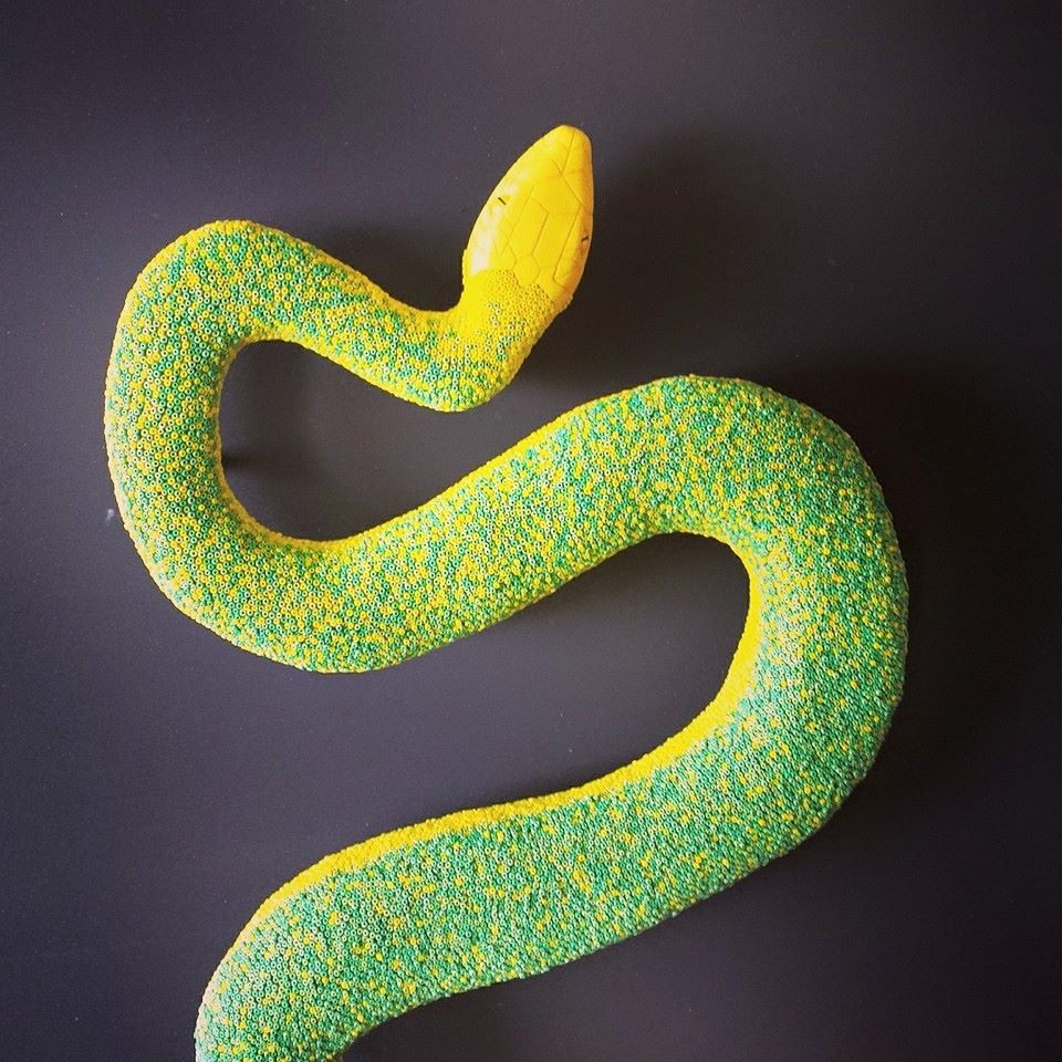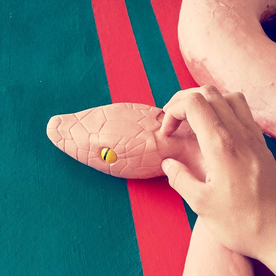 Lola is a hybrid python. She is inspired by two species of snakes; Morelia viridis y Dendroaspis angusticeps.